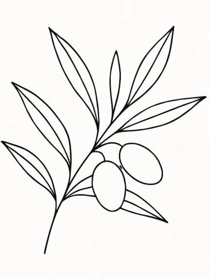 This image shows a minimalist line drawing of an olive branch. The illustration is composed of clean, thin black lines
